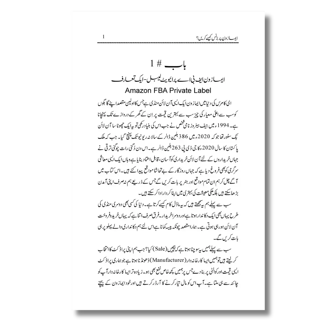 ایمازون پرائیویٹ لیبل کے سیلرز اور فری لانسرزکے لئے جامع گائیڈ مصنف : محمد رمیض الدین اس کتاب کو پڑھنے کے آپ کو دو فائدے ہوں گے ایک تو یہ کہ آپ کو اندازہ ہو جاۓ گا کہ کیا ایمازون پر پرائیویٹ لیبل کی فیلڈ آپ کے لئے ہے یا نہیں اور آپ عطائی ٹریندز کے کورسز سے بھی بچ جائیں گے۔ دوسرا فائدہ یہ ہے کہ پرائیویٹ لیبل کے بنیادی اور جدید نالج سے لیس ہو کر ایمازون کی دنیا میں پراڈکٹ یا سروس بیچ کر اپنے لئے روزگار کے نئے مواقع پیدا کرسکیں گے۔ سیلز کی صورت میں آپ اچھی پراڈکٹ کا انتخاب کرنے اور اس کو بیچنے کا ہنر سیکھ پائیں گے جبکہ سروس پروائیڈ ریعنی فری لانسرز کی صورت میں یہ سکل ایمازون کے سیلرز کو بیچ کر معیارزندگی بہتر کر سکتے ہیں۔ اگر چہ آج کل لوگ پڑھنے کی بجاۓ ویڈیودیکھنا پسند کرتے ہیں مگر میرا یقین ہے کہ کسی بھی نئی چیز کو سمجھنے کا منظم طریقہ تحریر اور کتاب ہے۔ تاہم یہ کتاب پڑھنے کے بعد آپ ڈاکٹر ذیشان عثمانی کے ایمر جنگ ٹیکنالوجی کے یو ٹیوب چینل پر ایمازون ایف بی اے پر فری کورس بھی کر سکتے ہیں ۔ وہاں آپ کولسٹنگ آپٹیمائزیشن اور پی پی سی پر میری ویڈیوز بھی مل جائیں گی ۔ پچھلے تین سالوں میں اپنے اساتزہ ،احباب اور ذاتی تجربے سے ایمازون پر پرائیویٹ لیبل کے بارے میں جو بھی سیکھا ہے وہ اس کتاب میں منتقل کر دیا ہے ۔ دعا ہے کہ اللہ تعالی اس کتاب کو امت کے لئے نفع بخش بناۓ اور زیادہ سے زیادہ لوگ مستفید ہوں ۔ اللہ ہم سب کا حامی و ناصر ہو۔ محمد رمیض الدین کوالالمپور ملائیشیا