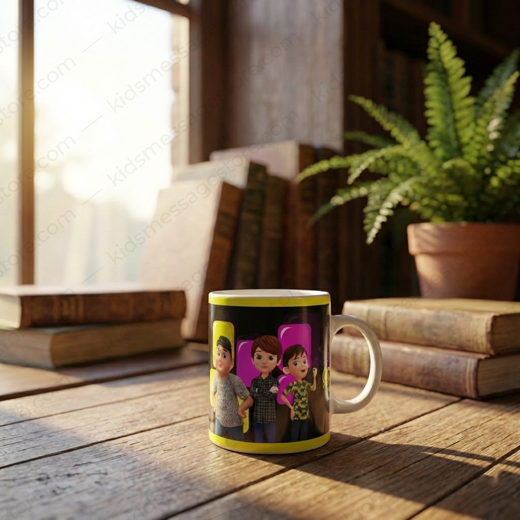 Made from premium quality ceramic, this 300ml mug is perfect for milk, tea, coffee, or any hot beverage. It features a smooth glossy finish, a strong and comfortable handle, and fade-resistant printing that remains bright even after regular washing. The mug is microwave safe, easy to clean, and suitable for everyday use.